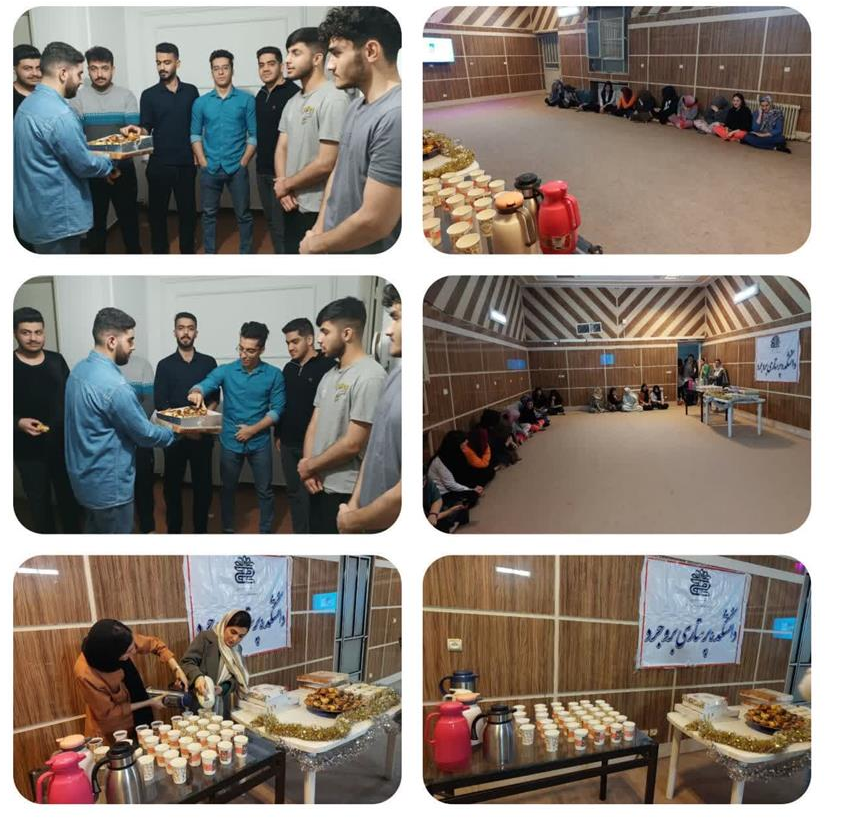 به مناسبت ولادت منجی عالم بشریت، حضرت مهدی موعود (عج) واحد فرهنگی دانشکده  پرستاری بروجرد در روز جمعه مورخ  26 دیماه اقدام  به برگزاری جشن در خوابگاه های برادران و خواهران نمود.
