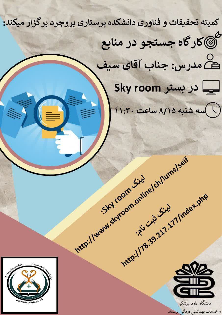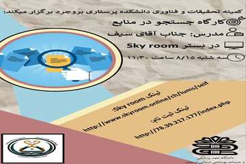 کارگاه جستجو در منابع،از سلسله کارگاه های کمیته تحقیقات و فناوری دانشجویی دانشکده پرستاری بروجرد، روز سه شنبه مورخ 15 / 8 / 1403 به صورت مجازی و در بستر اسکای روم با تدریس جناب آقای سیف برگزار گردید.