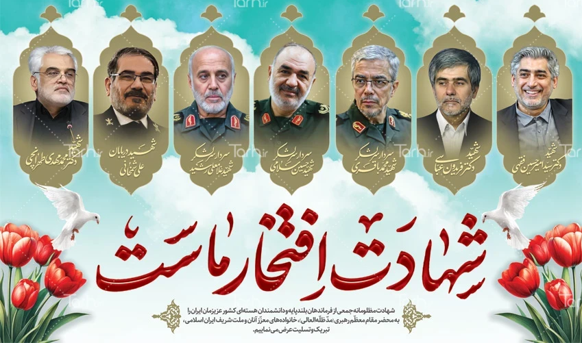 شهادت مظلومانه و پرافتخار جمعی از فرماندهان بلند پایه و دانشمندان هسته ای ایران عزیز را محضر حضرت بقیه الله الأعظم (ارواحنا فداه)، مقام معظم رهبری، خانواده های معزز و صبور آن بزرگواران و دیگر شهدای این جنایت و آحاد ملت شریف و انقلابی ایران تسلیت و تبریک عرض مینماییم.